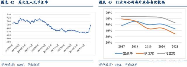 美元兌人民幣匯率從 2020 年 5 月份的 7.1 快速下行至 2021 年 2 月的 6.4 而后企穩(wěn),行業(yè)內(nèi)公司境外業(yè)務(wù)相對(duì)較高,匯率波動(dòng)對(duì)行業(yè)內(nèi)公司業(yè)績(jī)?cè)斐捎绊憽?/span>
